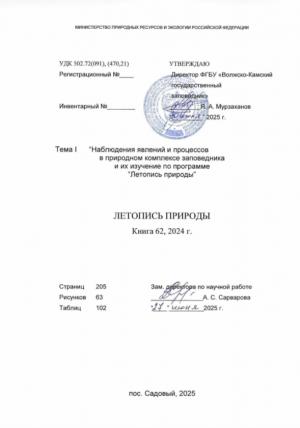Наблюдения явлений и процессов в природном комплексе заповедника и их изучение по программе «Летопись природы»