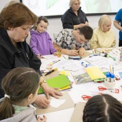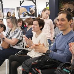 Продолжили творчеством: после лекционной части гости посетили мастер-классы. Вместе со специалистами экологического просвещения заповедника и дети, и взрослые создали свои заповедные сувениры – подарочные пакеты с природными изображениями, интерьерные подвески из спилов и объемные открытки.