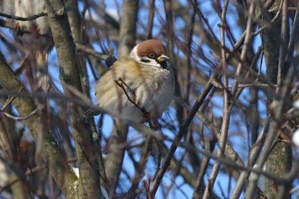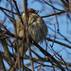 В регион пришли двадцатиградусные морозы, метели, высокая влажность. Птицам, которые остаются зимовать у нас, приходится в такое время нелегко. Важным умением в эту пору является умение птиц нахохлить перья. Нахохливание – это поведение, при котором птица поднимает перья, создавая эффект «клубка». Это может быть замечено у различных видов птиц и при различных ситуациях. Полевой воробей пользуется нахохливанием чаще всего в период сильных морозов. В теплое время года воробьи не нахохливаются. Отчего же достигается такой эффект сохранения. Теплоизолятором, в данном случае, выступает сам воздух, который располагается между нахохлившимися перьями. Чем более пушистые перья и толще «слоеный пирог» из перьев и сухого воздуха, тем лучше сохраняется тепло. В таком состоянии птица может даже вздремнуть. Птицы применяют нахохливание не только в целях сохранения тепла. Иные факторы, которые вызывают у птиц нахохливание: стрессовые ситуации. Птицы могут нахохливаться в ответ на присутствие хищников, шум или другие угрозы. В таких случаях нахохливание может быть частью защитной стратегии ; ухудшение здоровья птицы. Если птица больна или ослаблена, она может чаще находиться в нахохлившемся состоянии. Это может быть связано с тем, что для больных птиц бывает сложнее вырабатывать тепло и, следовательно, такие птицы нуждаются в дополнительных способах экономить энергию тела; социальные факторы. В стае птицы могут нахохливаться, чтобы продемонстрировать свою доминантность или подчинение. Это поведение может служить сигналом другим членам стаи о том, как они должны реагировать в определённой ситуации. Автор текста и фото ст.научный сотрудник Максим Егоров